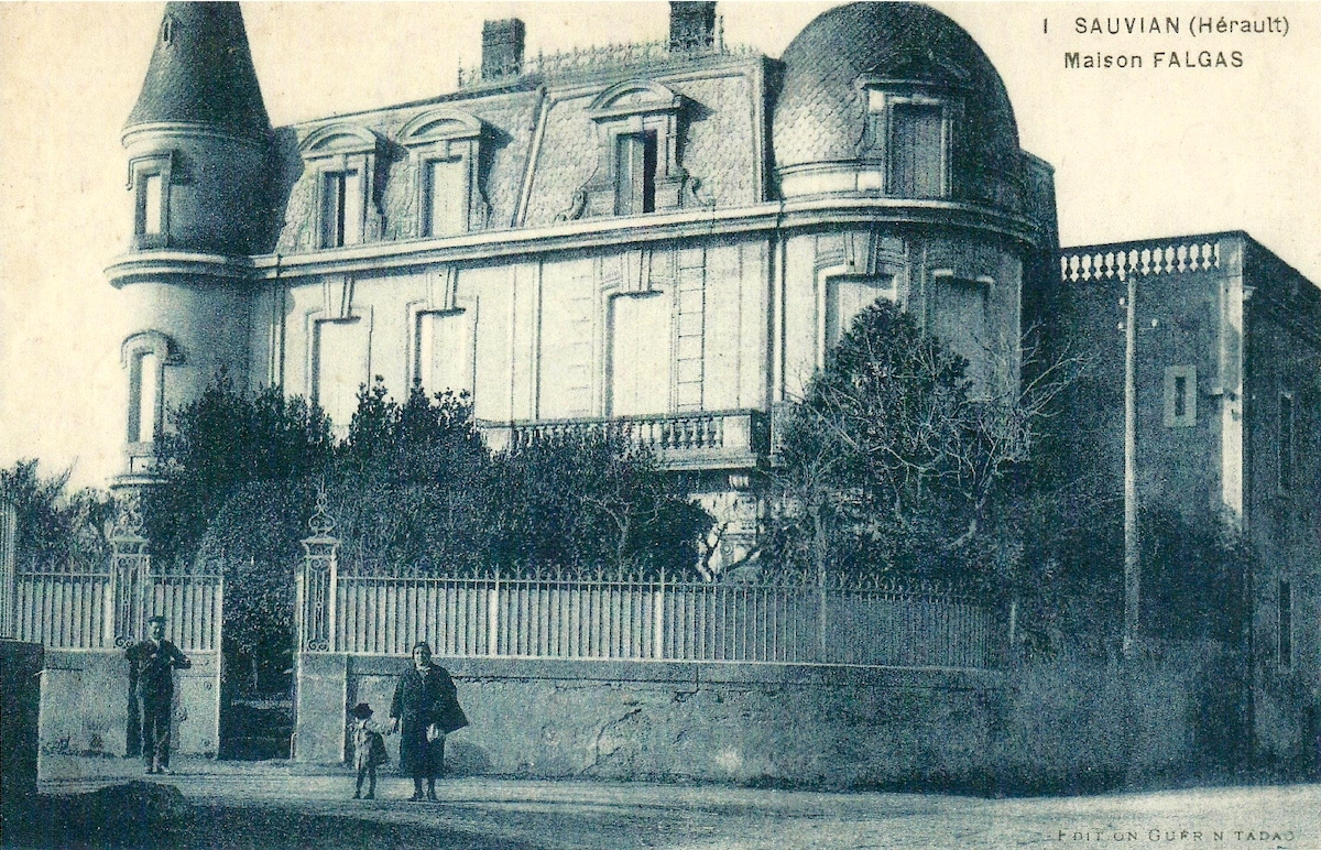 Située pratiquement en face de l’actuelle mairie, la maison Falgas, connue aussi sous le nom de « maison Calvet », est un des nombreux châteaux pinardiers de la région biterroise construits à la fin du XIXe siècle, marque ostentatoire de la richesse des grands viticulteurs de cette époque faste. Celui de Sauvian a été construit en 1885 par la famille Falgas.